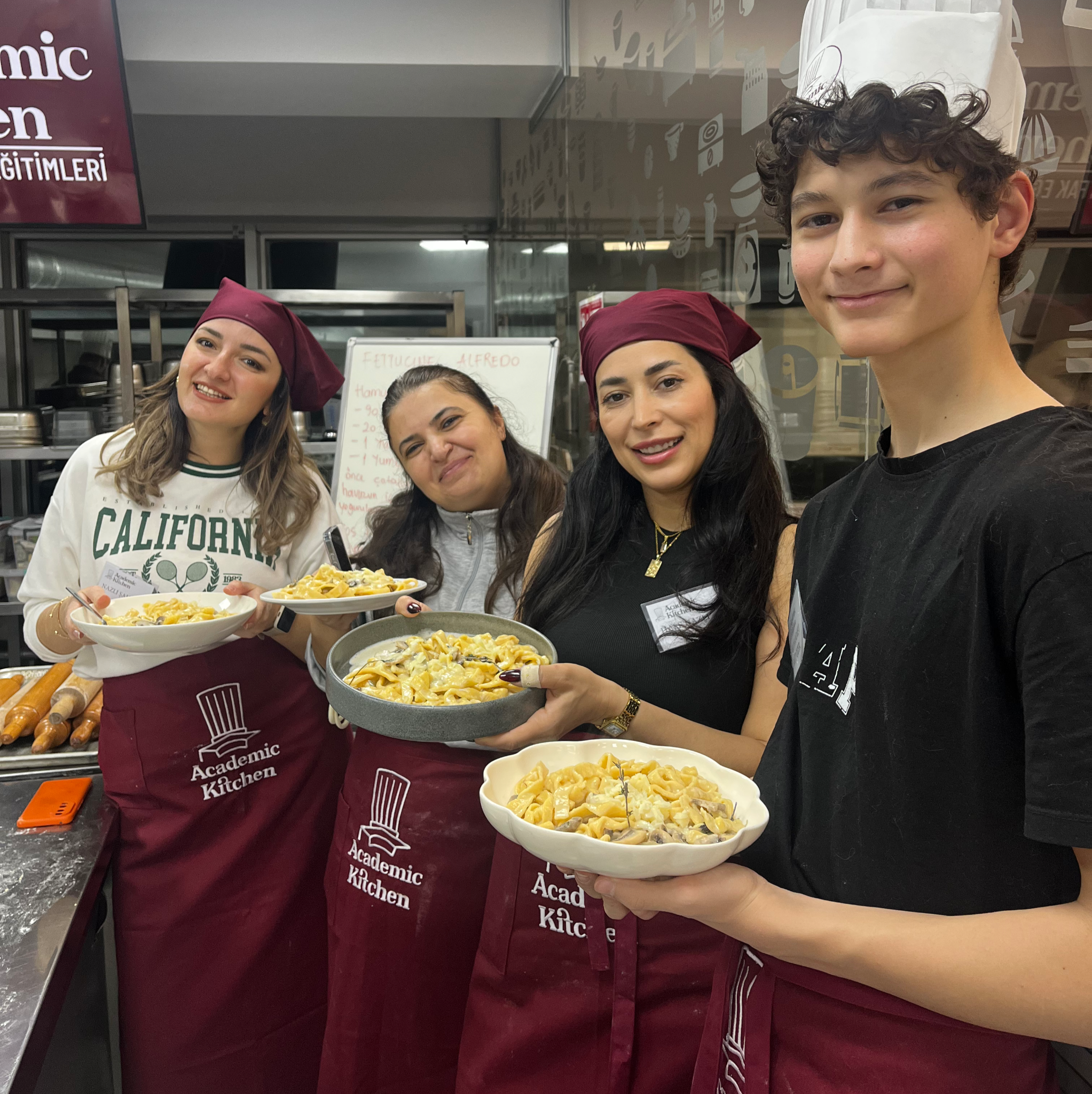 Katılımcıların hazırladığı el yapımı fettuccine makarnalar, günün sonunda kremalı mantar sos ile buluşturularak servis edildi.