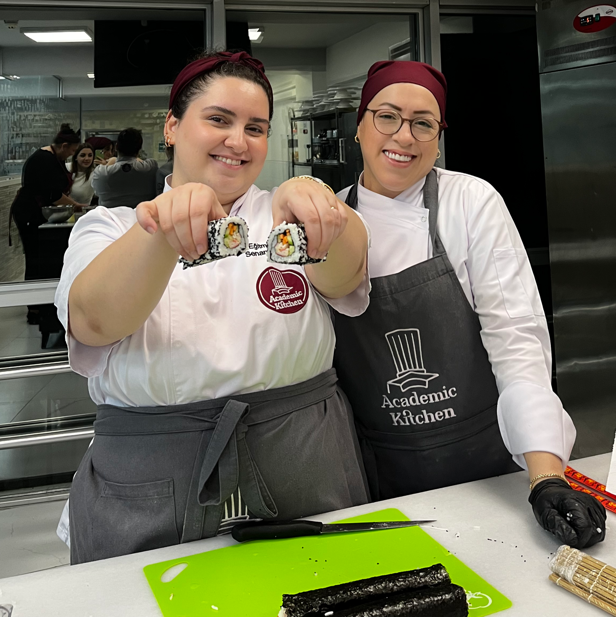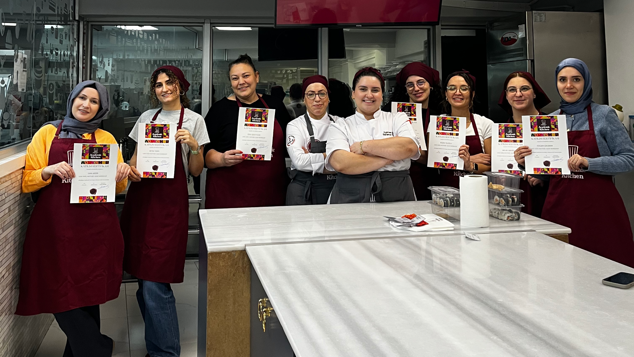 çeşitlerinin hazırlanışı, doğru sarım teknikleri ve estetik sunum detayları uygulamalı olarak işlendi. Katılımcılar, sushi pirincinin doğru kıvamdan kesim tekniklerine kadar sürecin tüm aşamalarını adım adım öğrenme şansı yakaladı.